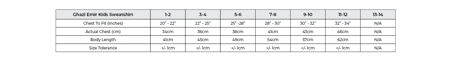 1/2 20/22" 3/4 22/25" 5/6 25/28" 7/8 28/30" 9/10 30/32" 11/12 32/34"
